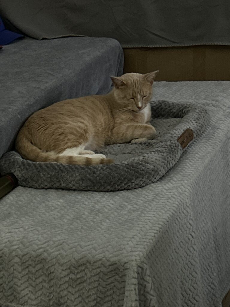 Above is “Dixie” better known as “Remis” sister. You wanna talk about a cat that wants allllllllll the attention she is the one. She wants to be in the middle of everything and keeps “Remi” youthful. They both play, little spats here and there. One of her greatest abilities is she never gets full. ALWAYS EATING!!!